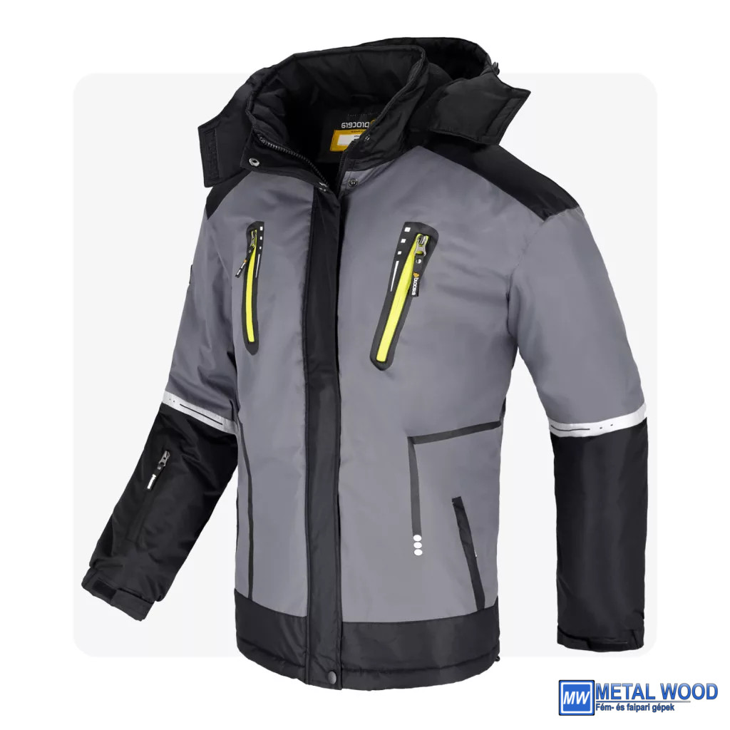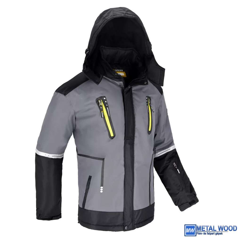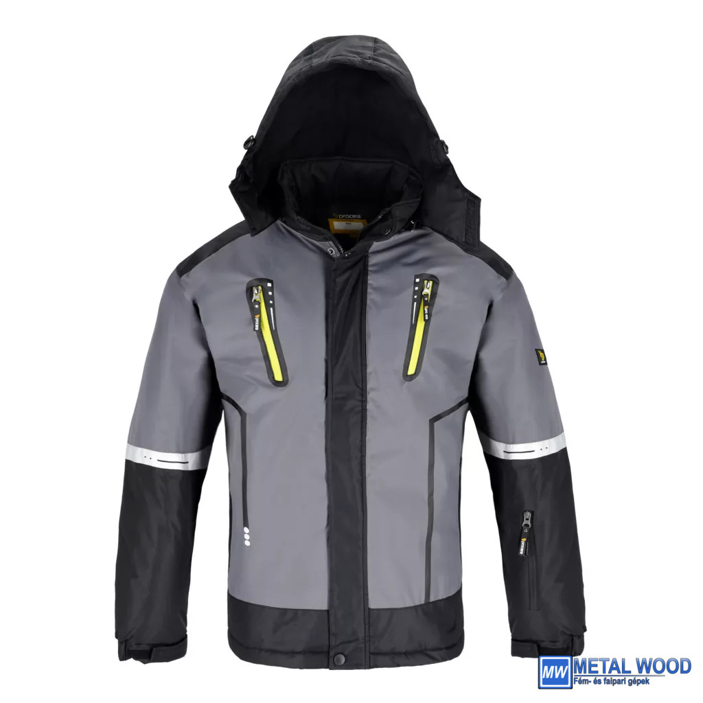 Ez a férfi szigetelt kabát ideális választás hideg, szeles vagy csapadékos időjárásban végzett munkákhoz és mindennapi viselethez is. A tartós, 100%-os poliészter külső réteg és a meleg polár bélés kombinációja kiváló hőszigetelést és kényelmet nyújt. A kabát funkcionalitását a praktikus zsebek, állítható kapucni és mandzsetták teszik teljessé.