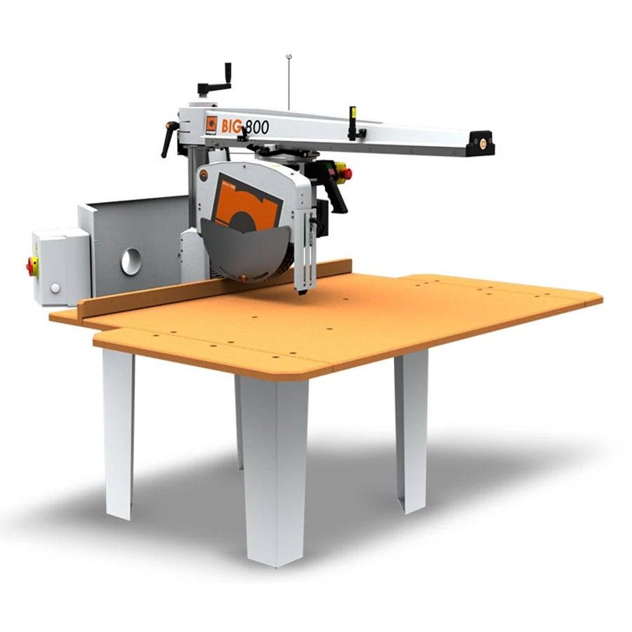 Automatikus visszatérítő rugóval rendelkezik, mely véd a vágás után a kar visszacsapásától. Önfékező motor, elektromos berendezés, motorvédő, vészleállító gomb, fűrészlap védőburkolat, hangszigetelt fűrészlapburkolat, szélesebb munkaasztal porelszívó csonkkal, porelszívásnak kialakított hely, ezek teszik komfortossá a Big 800-as radiálfűrészgépet.