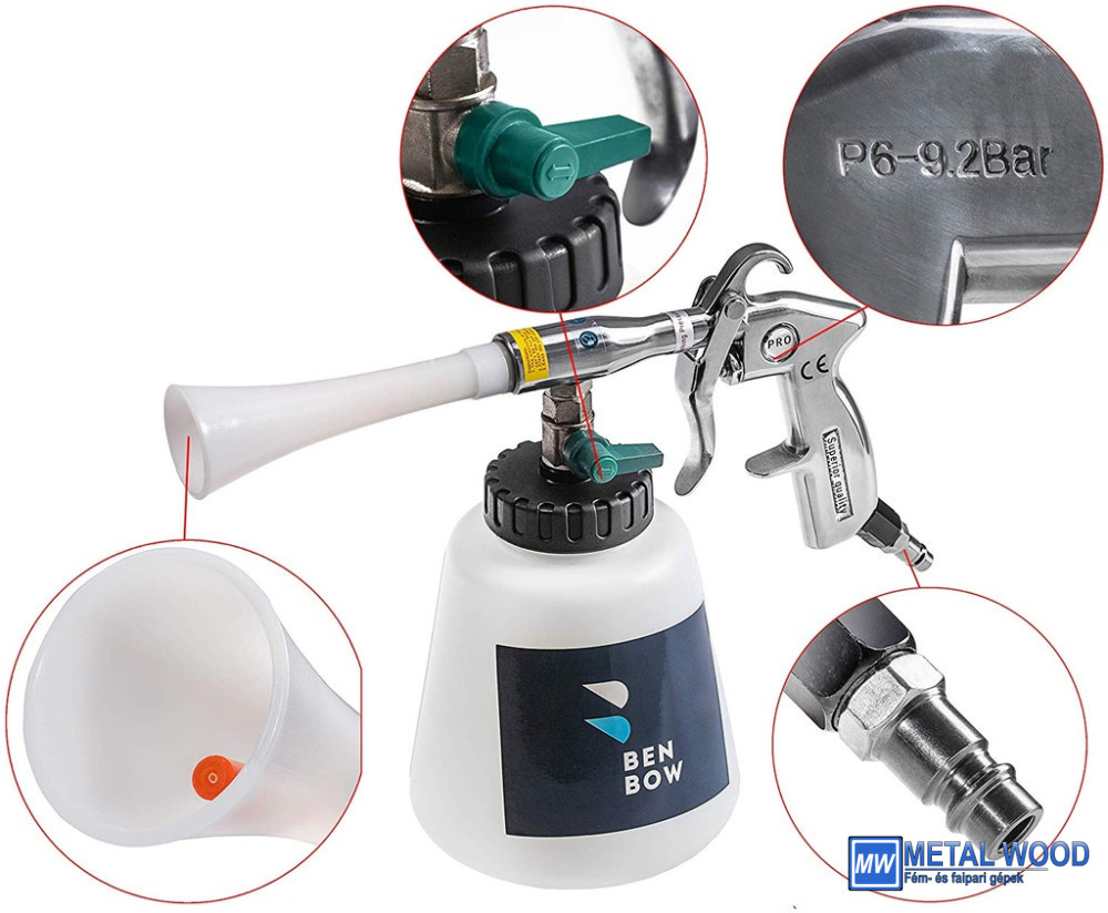 SZÁLLÍTÁS: BenBow tisztítópisztoly (műanyag tölcsér, belül fém) 1 literes tisztítószer tartállyal (üres),