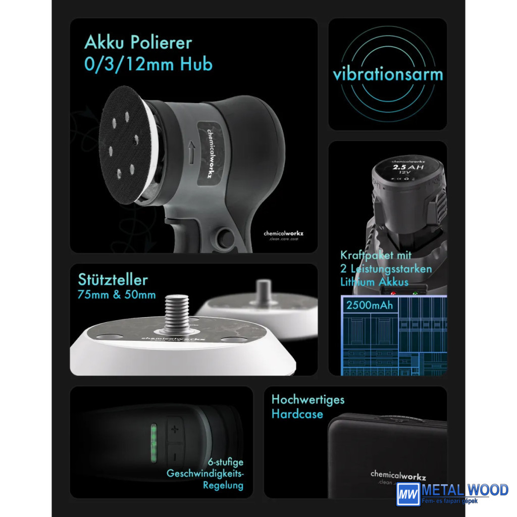 • Chemicalworkz DA12 EVO akkus excenteres polírozógép
