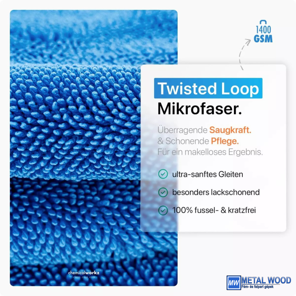 A ChemicalWorkz kétoldalas csavart hurkos szárítótörlőkendő egyedi és szuper puha mikroszálakból készül, amelyek nagyon hosszú élettartamúak. Ellentétben sok más ilyen típusú törlőkendővel, ennek a törlőkendőnek mindkét oldalán csavarhurkos szerkezet van.