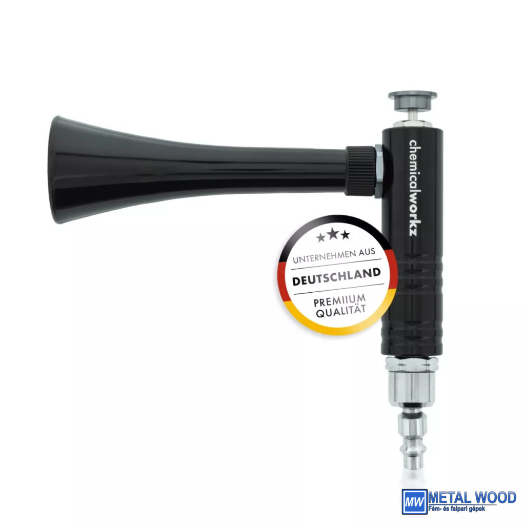 Ezenkívül a Chemicalworkz Mini Air Gun kimeneti háza alumínium erősítésű, ami fokozott robusztusságot és hosszú élettartamot biztosít még intenzív használat során is. A kopásvédelemmel ellátott tömlőfúvóka hosszú élettartamot biztosít, és megvédi a lefuvatót a használat közbeni sérülésektől.