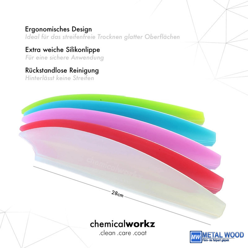 A különösen ergonomikus kialakításnak köszönhetően a ChemicalWorkz szilikon vízlehúzója ideális otthoni használatra, zuhanyzókban vagy ablaktörlőként is.