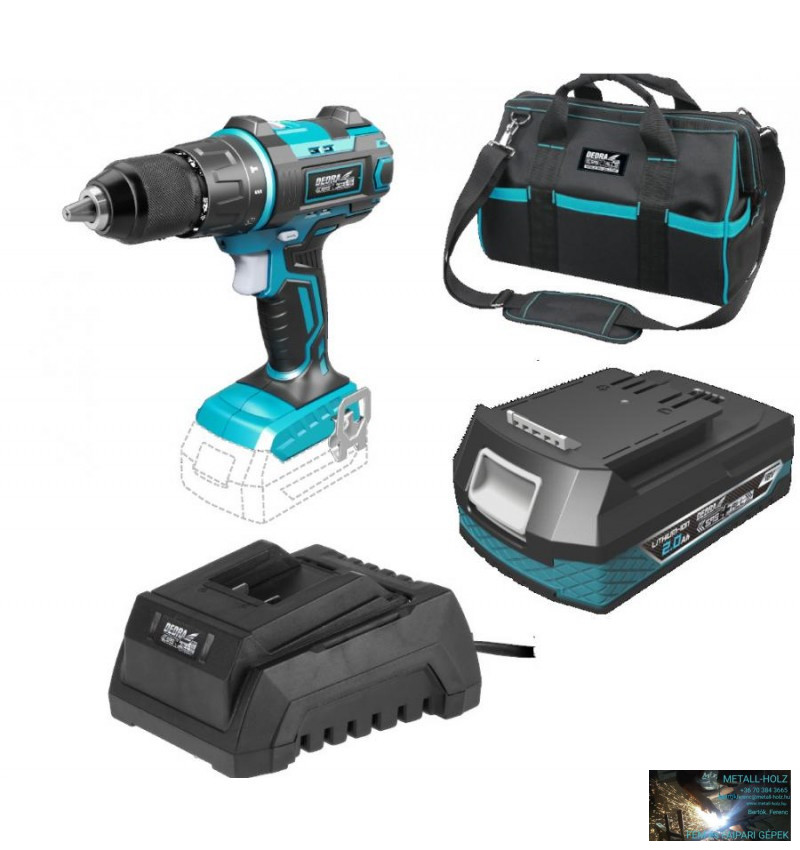 Dedra akkumulátoros ütvefúró, -csavarozó 18 V készlet (akku + töltő + táska)