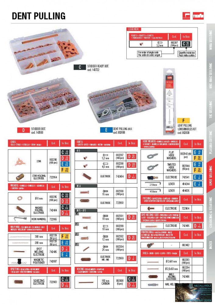 „Studder” induló készlet elektródákkal és tartozékokkal (10db csillag, 50db alátét 1 db befogó elektródával, 1 db egyengető elektróda, 1 db szénrúd)