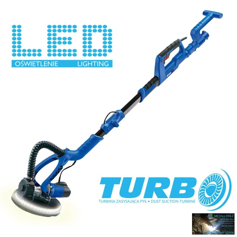 A csiszológép zsiráffal rendelkezik, mely lehetővé teszi a felhasználó számára a falat és mennyezetek megmunkálását.