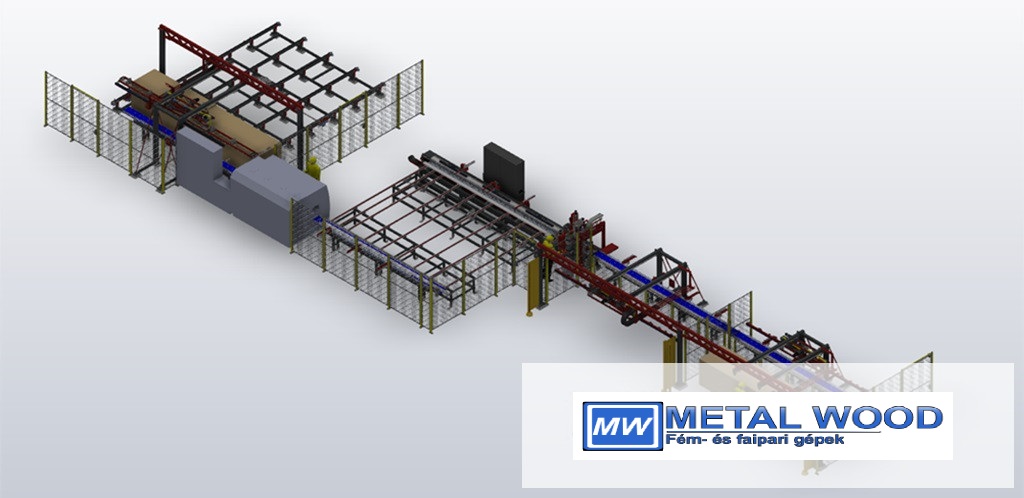 5 tengelyes fűrészek, maróegységek, fúróegységek, lézeres jelölés az ellendarabok pozícionálásához, adatmátrix jelölés az automatikus nyomon követhetőség érdekében.