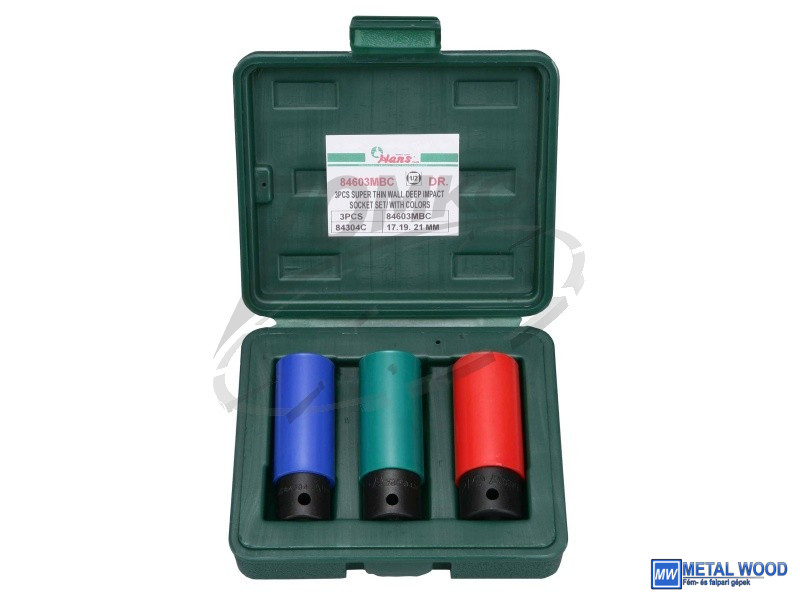 HANS 1/2″ gépi hosszú kerék dugókulcsfej készlet 3r. 17; 19; 21mm CrMo 84603MBC