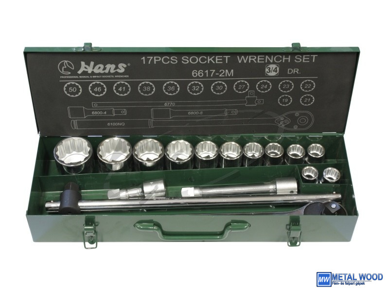 HANS 3/4″ dugókulcs készlet 12 szögű 17r. 19-50mm 6617-2M