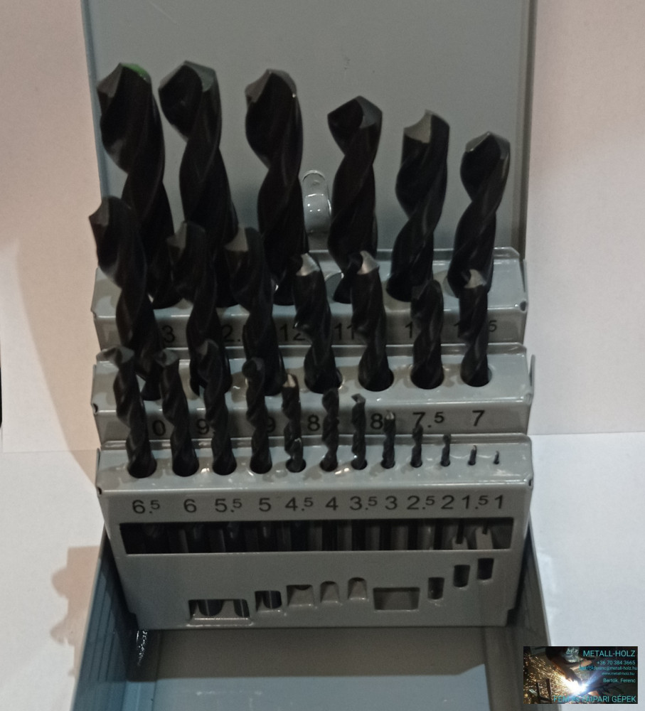 HSS fúrókészlet, 25darabos 1,0mm-13mm ig fém tároló dobozban