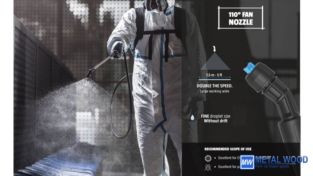 Az IK e 15 BS ideális permetező a leggyakrabban használt vegyszerek kijuttatására a tisztítás és fertőtlenítés, valamint a vírusok, kártevők és járványok elleni védekezés területén.