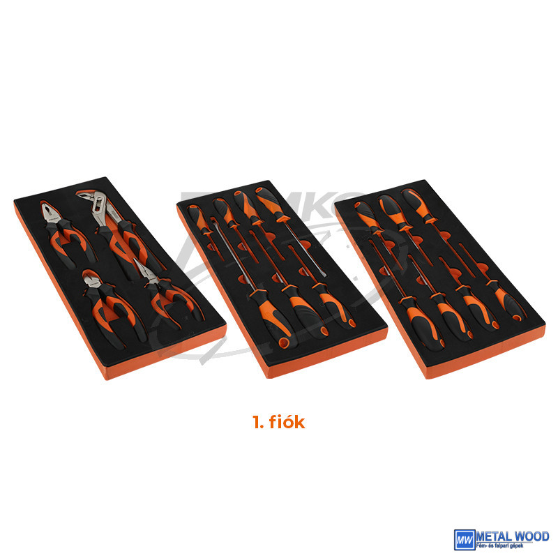 • Lapos csavarhúzók: SL3x75mm, SL3x100mm, 2x SL5x100mm, 2x SL6x150mm, SL8x200mm CrV