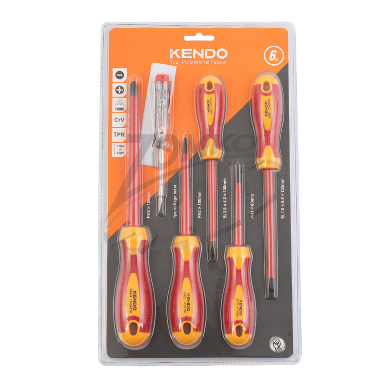 KENDO VDE szigetelt csavarhúzó készlet 5+1r. SL+PH+fázisceruza