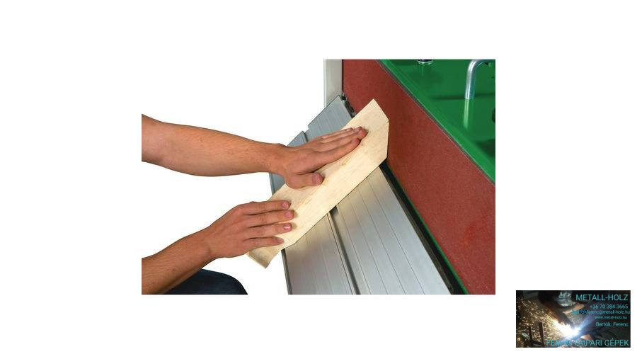 A hosszirányú asztal 110 mm-rel állítható magassággal a csiszolószalag szélességének optimális kihasználása érdekében