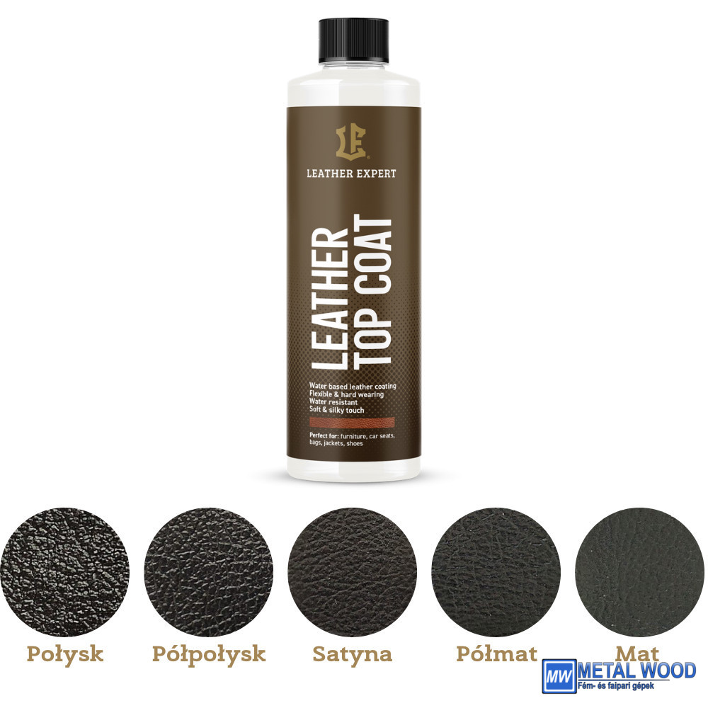Poliuretán fedőlakk természetes bőrre és eco-bőrre. A Top Coat megőrzi a színt és növeli a bőr kopással, sérülésekkel, nedvességgel és időjárási viszonyokkal szembeni ellenállását.