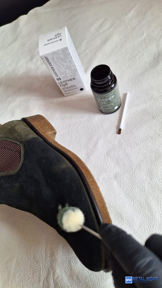 A Leather Dye-t velúrból, nubukból és anilinbőrből készült cipőkre, kézitáskákra és kiegészítőkön használható.