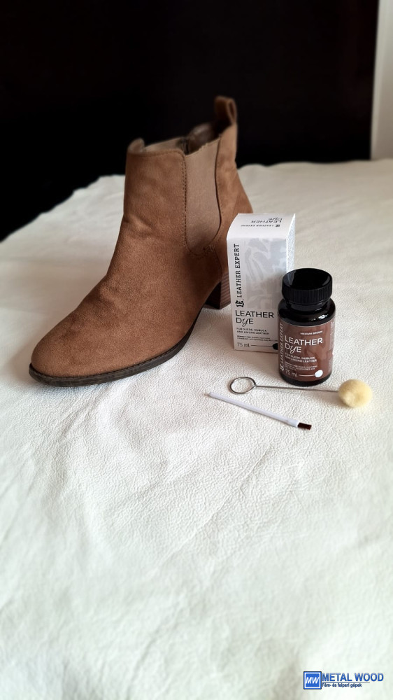A Leather Dye-t velúrból, nubukból és anilinbőrből készült cipőkre, kézitáskákra és kiegészítőkön használható.