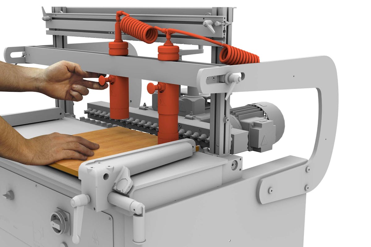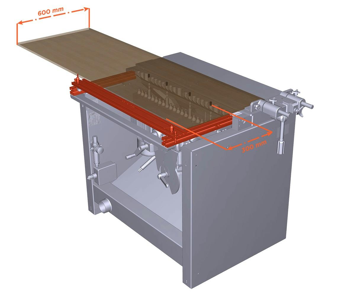 A 640 mm-es tengelytávnak és a nagyméretű munkaasztalnak köszönhetően egyszerre 2 darab 316 mm széles panelt tud megmunkálni.