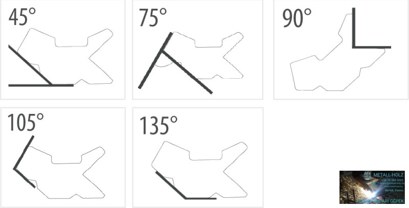 Használható szögek: 45°, 75°, 90°, 105°, 135°