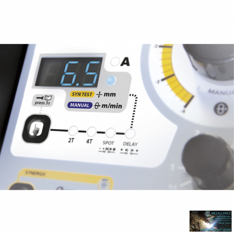 A beállított paraméterek mellett a készülék kiírja az ideális hegesztési anyagvastagságot.