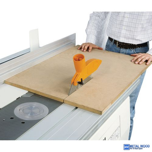 Vágókeret fokskálával és alumínium keresztmetszetű korláttal a panelek és nagy munkadarabok szögletes vágásához
