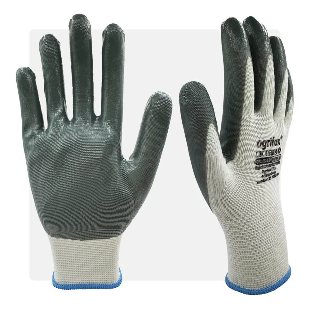 100% fehér poliészterből készült munkavédelmi kesztyű ideális választás precíz munkákhoz. A tenyérrészen található szürke nitril mártás biztosítja a kiváló tapadást és ellenállást az olajokkal, zsírokkal és egyéb vegyszerekkel szemben. A rugalmas poliészter anyag tökéletes illeszkedést és kényelmes viseletet garantál, lehetővé téve a pontos és hatékony munkavégzést.