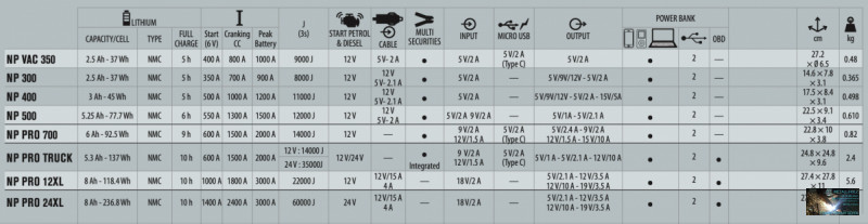 Indítható járművek: gokart, quad, fűnyíró traktor, motorkerékpár, jet-ski, városi kisautó, személy autó, SUV, lakó autó, kisteher autó.
