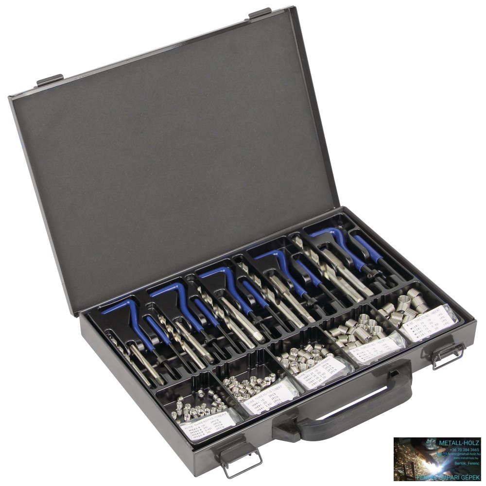 100 menetbetét: egyenként 25 darab. M5x0,8 mm / M6x1,0 / M8x1,25 / M10x1,5