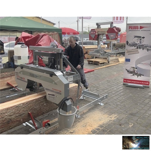 A PILOUS legkisebb benzinmotoros faipari gépe. Ideális megoldás családi gazdaságok, asztalos műhelyek vagy kisebb fűrésztelepek számára. Nagyon egyszerű kézi vezérlés. A kezelőszervek egy mobil hídra vannak telepítve, ennek köszönhetően a kezelő könnyebben hozzáférhet a munkadarabhoz vágáskor. A vágás magasságot egyszerű kézi hajtókarral lehet beállítani. Ez az első géptípus a világon melyet már elsősorban modern bimetall fűrészszalag használatára terveztek.