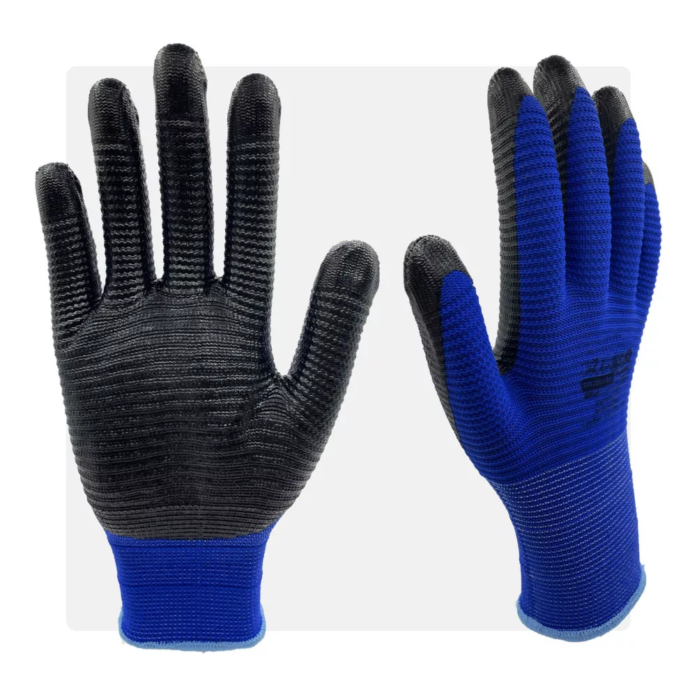100% kék poliészterből készült munkavédelmi kesztyű ideális választás minden olyan feladathoz, ahol biztos fogás és magas ellenállás szükséges. A tenyér részen található vastag nitril mártás kiváló tapadást biztosít, miközben ellenáll az olajokkal és zsírokkal szemben. A nitril barázdák még nagyobb fogásbiztonságot nyújtanak, segítve a stabil és precíz munkavégzést.