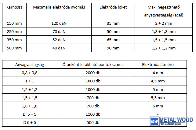 Maximális hegeszthető anyagvastagság (acéllemez): 2 + 2 mm