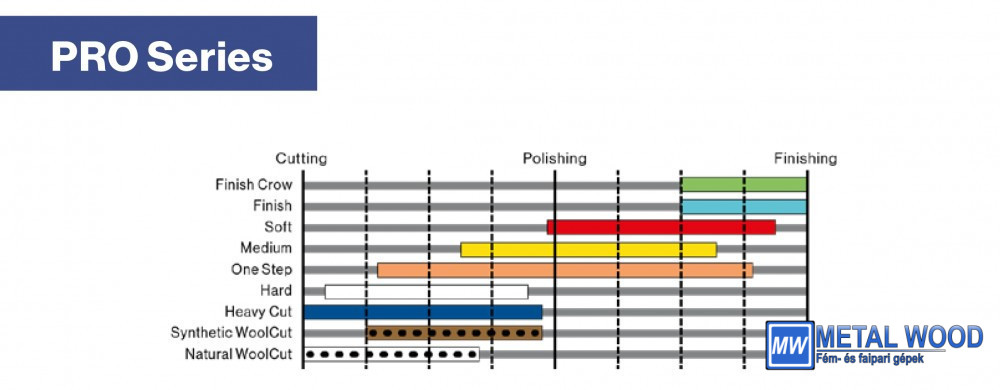 Közepes keménységű polírozó párna, minden bevonathoz alkalmas. A legnagyobb teljesítményű polírozópasztákhoz, nagyon magas kopásállósággal.