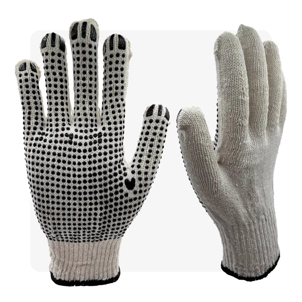 Csúszásgátló pontozott cérnakesztyű kiváló választás, ha gazdaságos megoldást keres. 100% pamut alapanyaga és 10-es tűfinomsága mellett két szálon fut, és egyoldali PVC pontozással rendelkezik a jobb tapadás érdekében. A törtfehér színű kesztyű ideális választás számos munkakörnyezetben.
