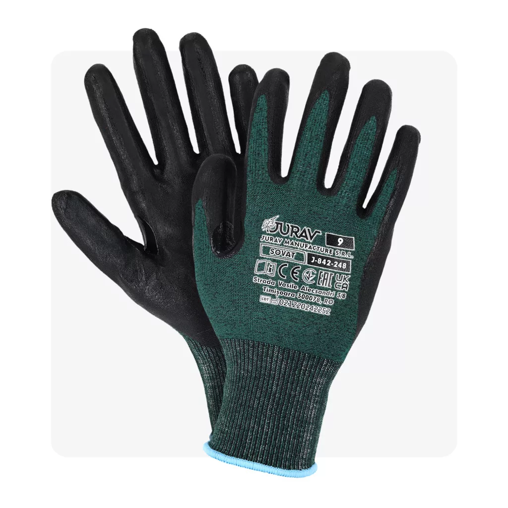 SOVAT mikrohabos nitril mártott zöld munkavédelmi kesztyű