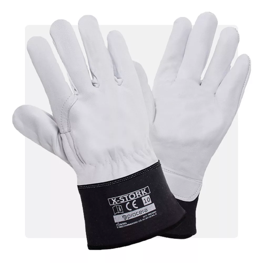 A X-STORK kecskebőr védőkesztyű tökéletes választás azok számára, akik maximális védelmet és kényelmet keresnek. A szemcsés kecskebőr kiváló tapadást és kopásállóságot biztosít, míg a farmer anyaggal merevített csuklórész extra védelmet nyújt a munka során.