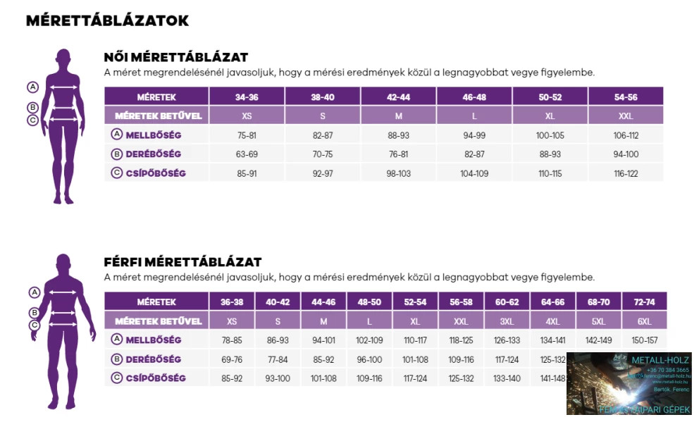 Méretek: S, M, L, XL, 2XL, 3XL, 4XL