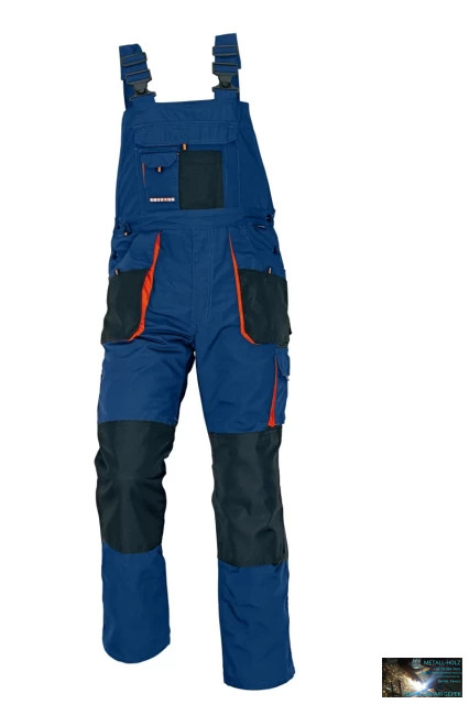 férfi mellesnadrág; rugalmas, innovatív szövet TRIFIBETEX – ergonomikus szabás; a derékon hátul gumírozott; tartós tripla varrások a lábaknál és az ágyéknál; megerősített térdrész, térdvédőtartó zsebbel; tágas multifunkcionális első zsebek szerszámtartó pánttal; 2 hátsó zseb Oxford erősítéssel; a combon telefontartó zseb tépőzáras fedéllel; vonalzó zseb; késtartó zseb; kalapácstartó; D-gyűrű; szerszámtartó hurok a derékon; fényvisszavető kiegészítések; hosszabbítható szár. Méretek: 46-64