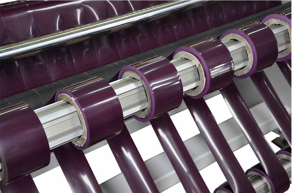 A hasítógép PVC és PP fólia tekercseket vág akár 0,20 mm vastagságig és 700 mm vagy 1500 mm szélességig.