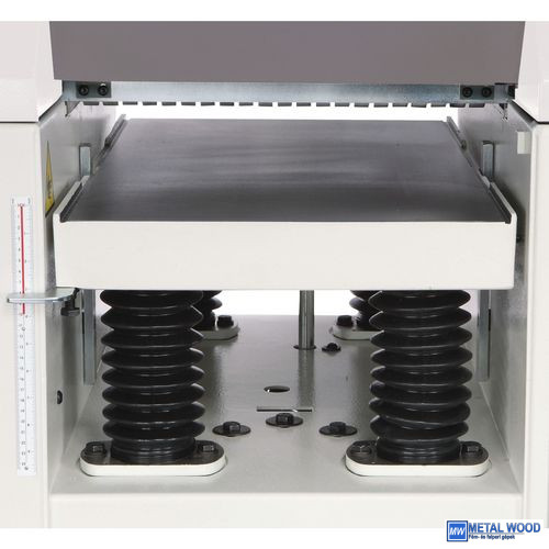 A vastagságtáblázat beállítása a beállított gyalulási magassághoz (1/10 mm pontosságú) számkijelzővel ellátott kézikerékkel történik.
