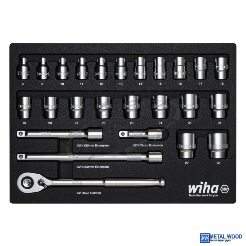 WIHA 1/2″ dugókulcs készlet 25r. 8-28 mm fiókmodul 338-91/No.44740