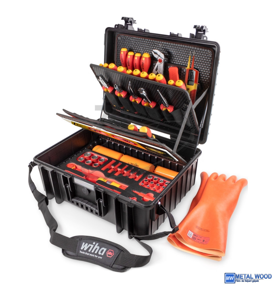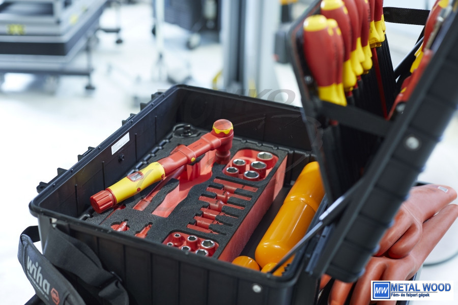 • A feszültségvizsgálóktól a nyomatékkulcsokig, a védőkesztyűktől a figyelmeztető jelekig: a teljesen felszerelt kofferben mindig kéznél van a megfelelő Wiha szerszám